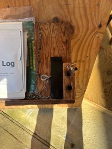 Although a small item on the list, a magnet was placed at the sign in shed, yes I know finally, on the shelf that the sign in book sits. This will allow members to check their ammo for steel cores or bi metallic rounds, only if you are shooting steel.